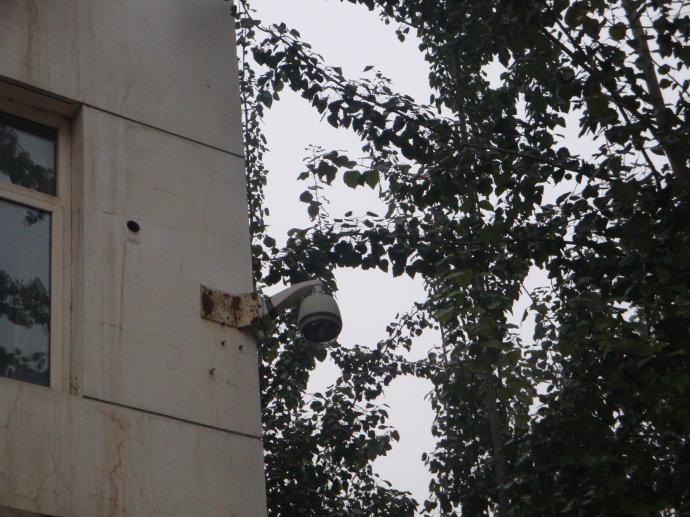 记者观察到,该摄像头一尘不染,至少九成新,而摄像头固定架却锈迹斑斑。该门卫解释说:“我们对摄像头保养得好。”