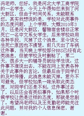 另外一位学生向记者发来短信解释:“我是河大工商的学生,我们不是不想揭发,只是李刚在这的势力很大,我们学生不敢站出来。”