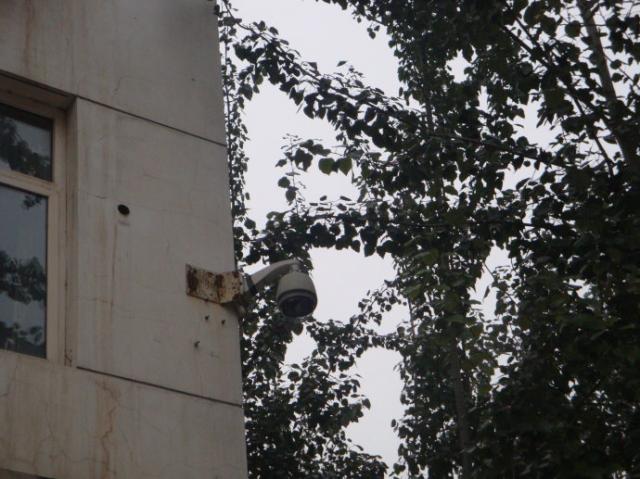 但是10月21日本报记者勘察事发现场,仔细搜寻周围,并没有发现任何明显的监控设备。然而23日河北大学宣传部工作人员带领记者再次来到事发现场时,指给记者观看,在易百超市对面的小白楼两层楼高处有一个大的摄像头。