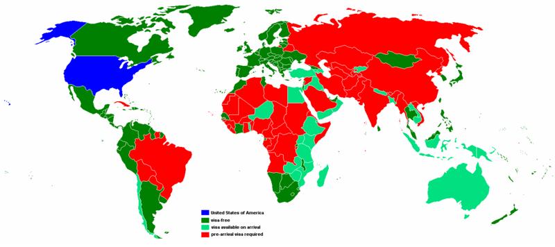 很偶然地在网上看到一个关于“世界各国护照的免签证世界地图”,细细阅读,认真比对,我,受惊了!!! 其实不该受惊的。这些年来,也算走南闯北,世界上也还跑过一些国家和地区。一般情况下,只要说出国或出境,我跟大多数国人的心态是差不多的,激动,加上无尽的期待。但是,尽管多数时间是公务出国,相应手续也多由专人负责去跑,不少时候我还是愤懑地一次次骂娘。原因很简单:繁琐的手续往往耽误了新闻的最佳时机,等到只欠东风的那一刻,黄花菜已经沤成肥料了。再者,不少国家对中国人的签证,哪怕是公务签呢,审查之严,也不时地会让我这天朝子民威风扫地。 身边也不时听到某位朋友被某国大使馆连续拒签的事情,甚至转换到广州或上海的领事馆去努力也依旧不成。一位亲密战友现在在美国,去的时候还是军人,还是高级别科技人才,现在却已经是办理了退役手续的游子,好几年了也不见回来,他的夫人这几年一直在申请探亲,老美的签证官就是不开恩,前几天电话里我这嫂子还在埋怨…… 在我们的官老爷们关起大门对着一群傻呵呵的臣民吆喝自己在地球上绝世威猛和辉煌业绩的时分,蚂蚁大的彪悍已经以恐龙的姿态徜徉,而一排排比大象还硕大的错误和问题却只出现在讲话里社论里,就是没有走进依法解决的快车道,多数事情还连羊肠小径都没有人摸索呢。然后,可能自己也觉得总是自摸出高潮不是那么回事,于是去偌大的地球上用脚趾蘸着湿湿的哈喇子寻找具有赞歌属性的芝麻,加上超倍放大镜之后我们便以为那是惊天的大西瓜。于是时不时我们能在新闻联播里看到各种异族色彩的男女背诵我们几十年前就已经熟悉的那些陈词滥调,于是发来贺电的那些国家的名字需要我们在地图上用更大更大的放大镜仔细踅摸。