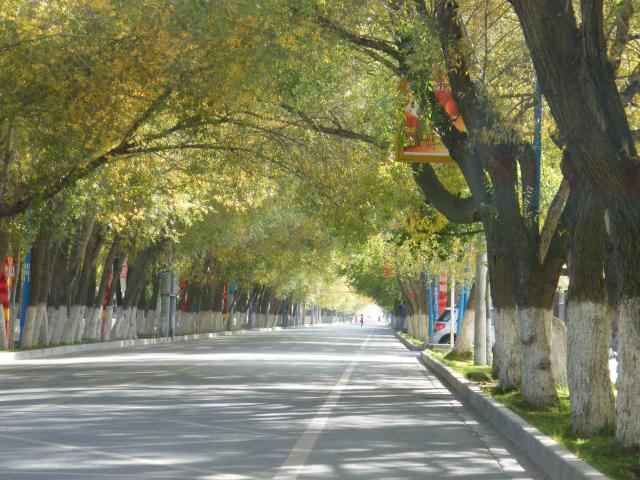 在买保险管的路上路过德令哈政府门前的绿荫道路,让人遐想。