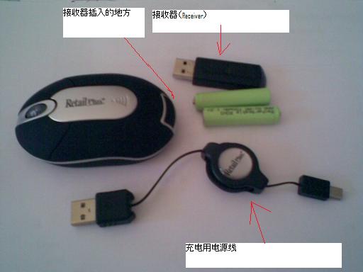 买时把那个充电的电源线当成鼠标线了,以为这个鼠标即可以当有线用,又可以当无线用。回来就插上电源线,果然能用。然后就想试试它的无线功能怎么用。包装盒里还有两节可充电的电池,可不知道怎么装,多亏我当时没螺丝刀,否则鼠标当时就翘开了。正发愁到那里找螺丝刀,发现还有一本英文说明书,我对英文的敏感度远远低于中文,看了一下说明书,说摁着鼠标上方的那个银色的可以把盖从后面拉开,果然能拉开,真是机巧。说明书上有装电池的图片,因为夹在英文中,所以我对没有语言概念的图片的敏感度也降低了。我把电池装上,把电源线拔了,反复按接收器和鼠标上的同步(synchronize)按钮,就是没反应。我把电源线装上,嗯,还好,鼠标能用了。这么折腾了好长时间,我当时又有其他事赶着要做,就有些烦了。