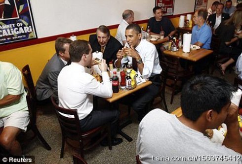 M: do you know that Obama had a meal with Russian President in a fast food restaurant?