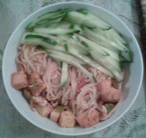 20100713补充:换张图,这张炸酱面放了鱼豆腐,因为要上镜,黄瓜收拾的也比较好。