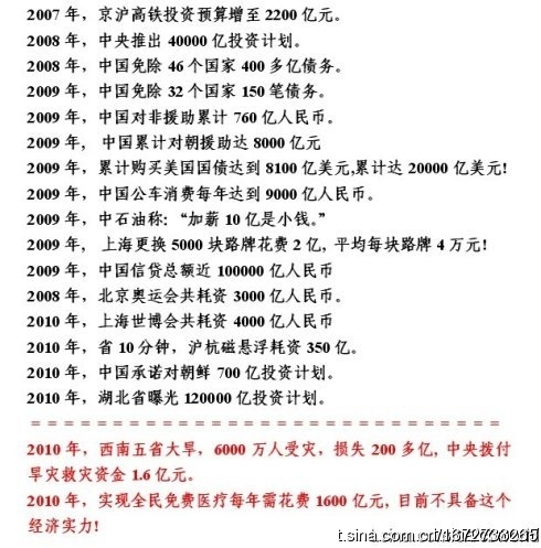 2010年,西南五省大旱,6000万人受灾,损失200多亿,中央拨付旱灾救灾资金1。6亿元;