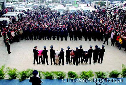 河南沁阳公安机关对指控村支书的8位农民开公捕大会挂牌子展览、判刑(图)