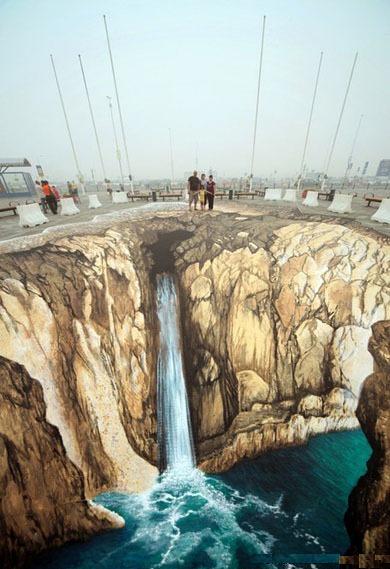 德国街头艺术家埃德加·穆勒花了3天时间在莫斯科的一条街道上画的一幅巨型三维瀑布。